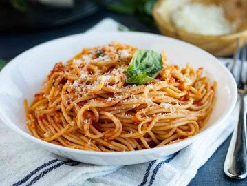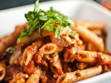 All Pasta Dinners include Salad and Garlic Bread and are baked with Real Mozzarella Cheese. Meat Sauce & Meatballs